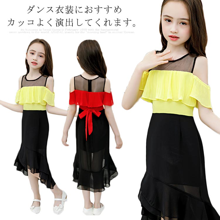 子供ワンピース ダンス衣装 ダンスワンピース カラフル ドレス フレアスカート キッズ 女の子 ジュニア ラテンダンス 社交ダンス 衣発表会 イベント ステージ衣装 可愛い 新作